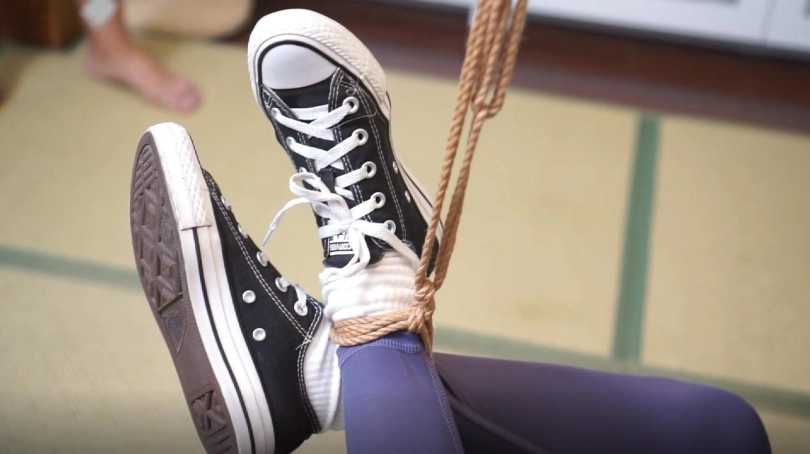 歹徒对着沙发上的小0一顿掰腿虐待