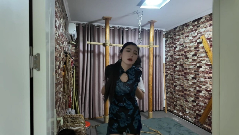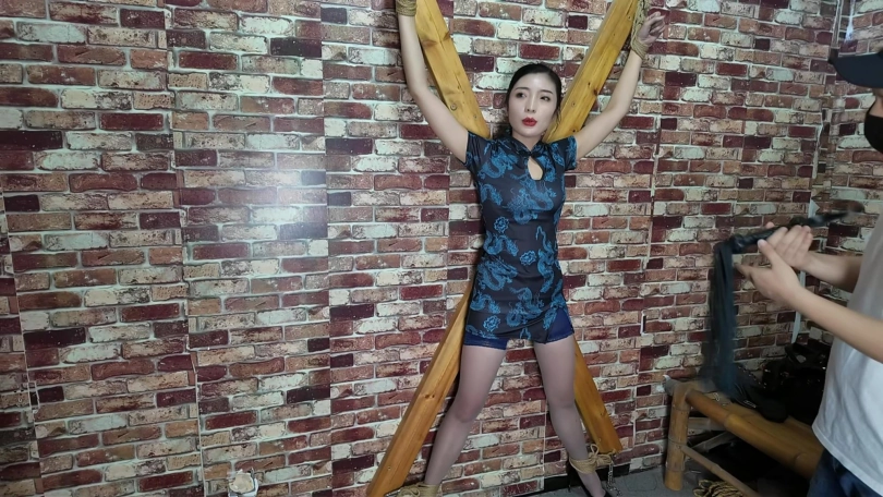 林婷接到线报,前往歹徒秘密据点营救,不料被早已埋伏在门口的打手给抓获,打手知道林婷身手好,五花大绑不放心,又加上了脚镣,相见老大需要过刑讯关,老虎凳,吊,X架,大字捆绑,鞭打,几关下来把林婷折磨的奄奄一息,这还不算完,最后又被关到笼子里面,等候老大回来处置。