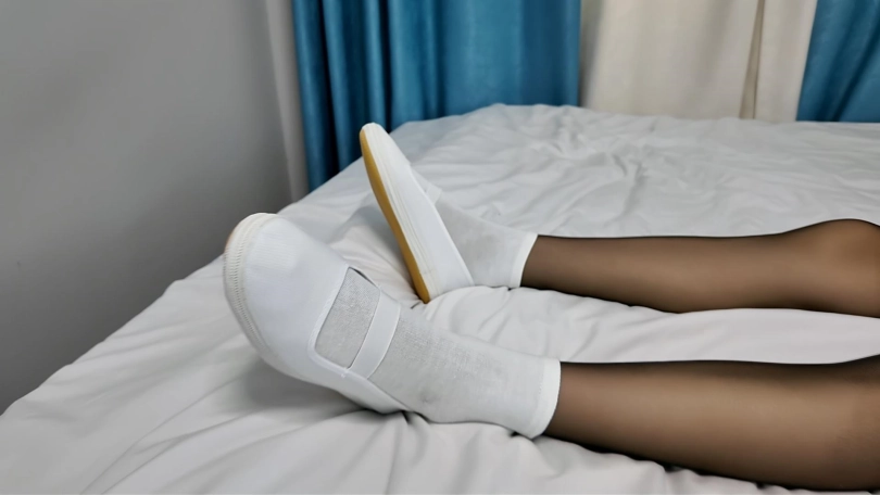 晓倩下班回家,没想到饮料已经被下了迷药,喝过之后晕倒在客厅,被神秘人抱到床上,脱下裤子,上下其手,抚摸丝足,丝腿,并用棒棒玩到高超,脱下肉丝,换上黑丝,白袜,白鞋,继续抚摸玩丝足,最后穿上过膝长靴抗走,进行先一步