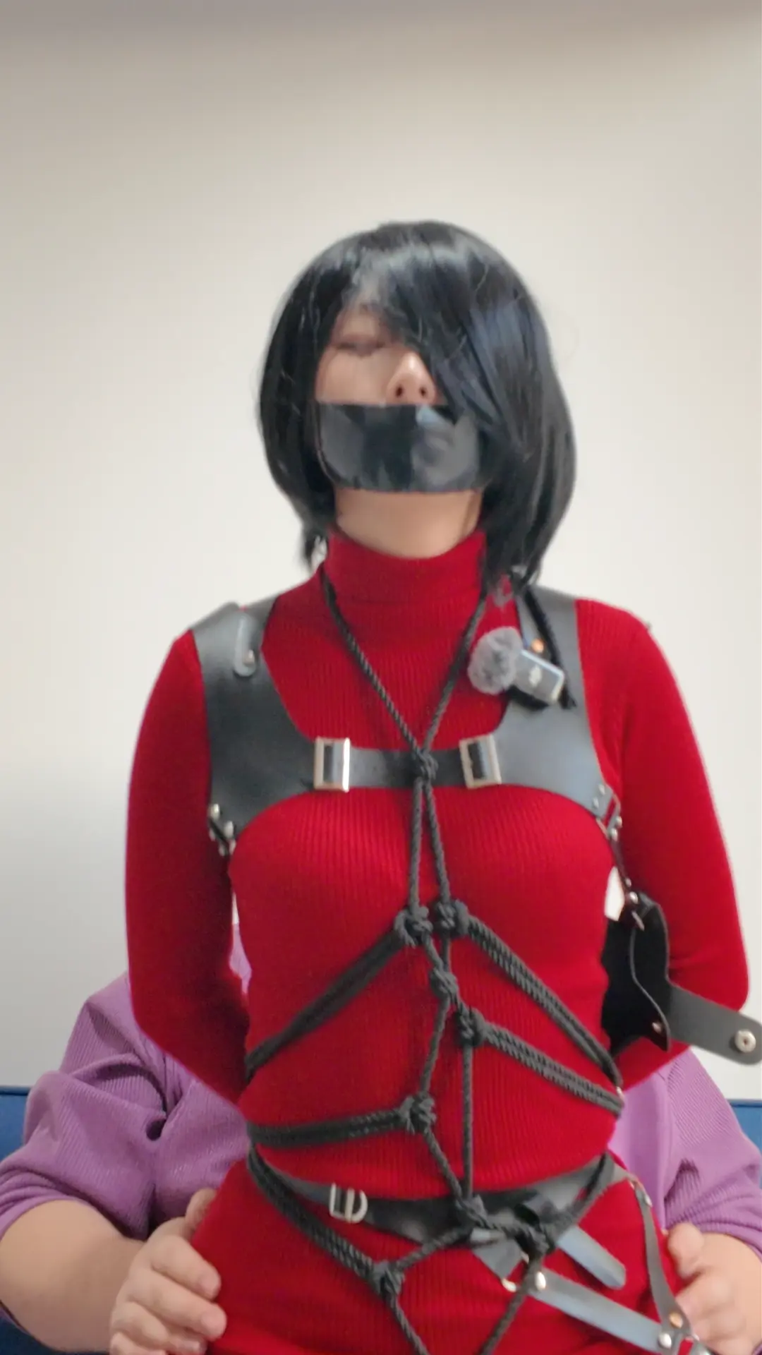 龟甲缚捆绑胶带封嘴,疯狂挣扎,娇喘连连