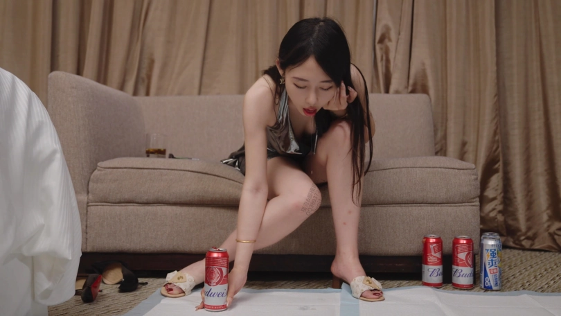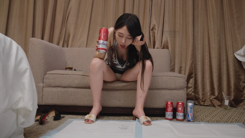 然后我买了两瓶强爽三瓶百威,混酒喝劲大,没一会儿她就晕乎乎的了。一直打嗝和干呕。吐不出来的感觉让她很难受。