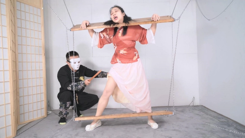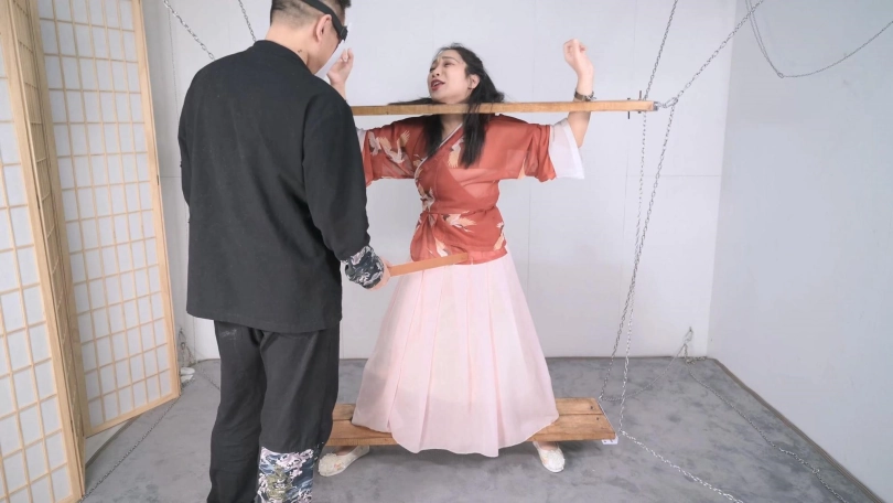 【撒琅制造】绳模沐小雨古装木枷固定,即兴发挥小剧情--戒尺、鞭打、TK