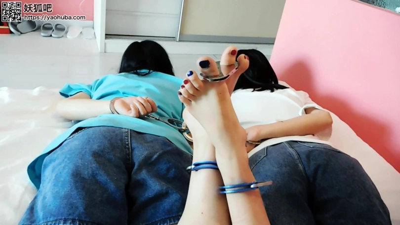 【趾间艺束】首次双人视频!!! 小王&小晶家中镣铐驷马自缚 钥匙掉地解锁失败 被坏人挠脚心TK 手铐脚铐脚趾铐