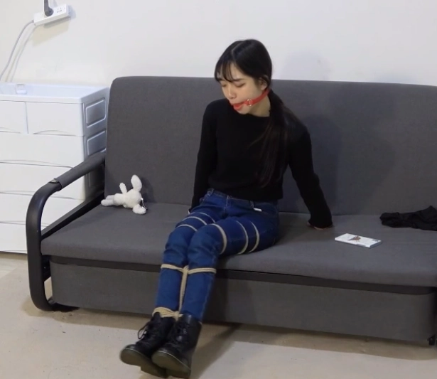 她努力挣扎着,而随着她的挣扎,捆在她身上的绳索也越来越多,最后竟是将她驷马捆缚起来。