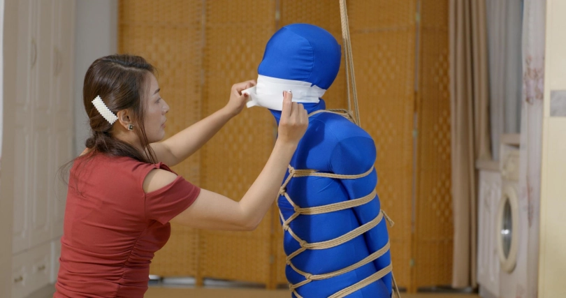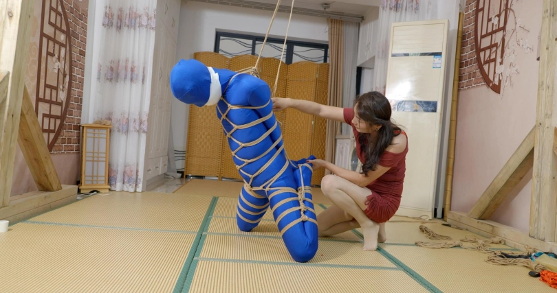 【王丽】菱形龟甲缚+折腿吊缚调教紧身衣男M带过程