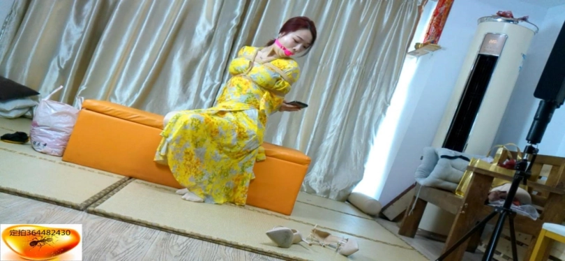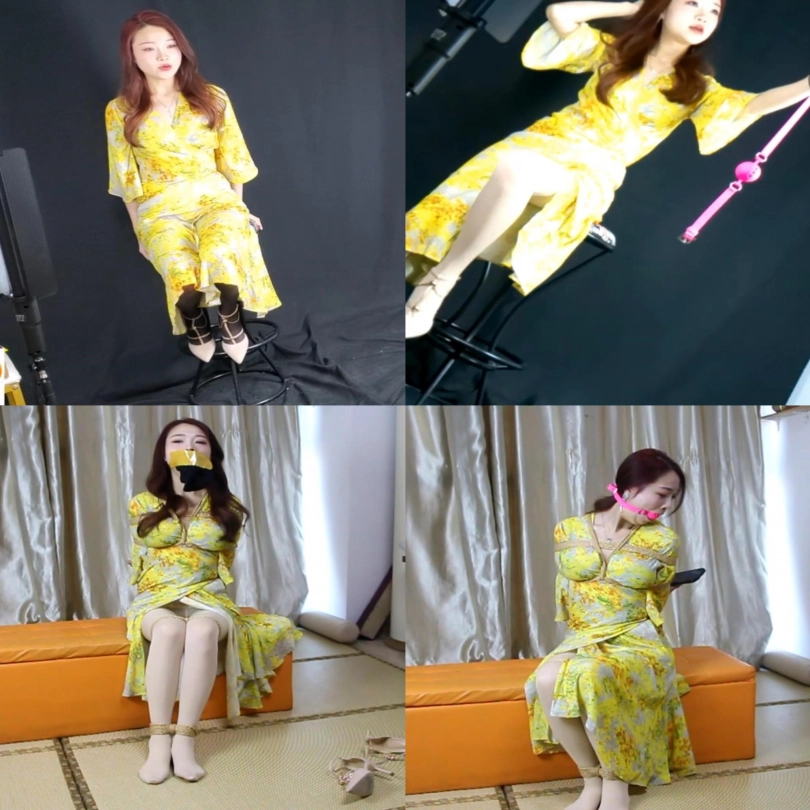 楠楠是一位丝袜公司的主播,拿完公司需要带货讲解的快递,但是回到家中发现多了不是丝袜的一个快递,美女主播因为比较喜欢贪小便宜,没打算还回去,便开始了直播,脱下鞋后讲解了起来,讲解完黑丝后便脱下黑丝换上光腿神器后又开始讲解光腿神器,讲解完后便拆开了多于的一个快递,打开一看居然是一个口球,不懂的主播,便问起来直播间观众,得到观众答应后,然后自己拿出手机上网查询这才明白,原来是个粉色的大号口球,还挺好看,就在主播很疑惑的跟观众聊的时候,突然听见敲门声,询问得到的答复是快递,可是自己没有买快递呀,于是藏好口球,穿上鞋子就去开门了。一开门就被人用毛巾捂住了嘴,拖入室内后,并要挟主播不要出声,威胁主播脱下鞋子,然后威胁把旁边穿过的黑丝拿过来,拿过后递给坏人,然后坏人拿出绳子,看见坏人拿出子绳便喊救命,坏人见状赶快捂住主播嘴,然后强制将黑丝塞到主播嘴里,模特上身日式捆绑,脚裸和脚膝也被紧紧捆绑上,最后被胶带封住,被要挟钱财在忙哪,被逼无奈只能挣吟示意同意,坏人便撕开胶布,拿出丝袜后,主播说出钱财位置后,祈求坏人不要用穿过一天的丝袜堵她的嘴,便告诉坏人,自己藏了一个粉色大号的口球,用它堵住我的嘴,并告知了位置,坏人拿到后,然后将5CM大号口球,塞到主播嘴中,拉的很紧,便去寻找钱财了,疯狂挣扎了无果,见坏人离开了,便努力起身去拿开直播的手机求助,可是嘴被塞上了5CM的大号口球,拉的很紧,口球太大,说不出话,只能打字发消息求救,突然被坏人看见,又被绑上了超紧的驷马,拉的很紧,脚跟贴紧臀部,无法动弹了,只能在原地痛苦挣扎,片尾还有花絮。