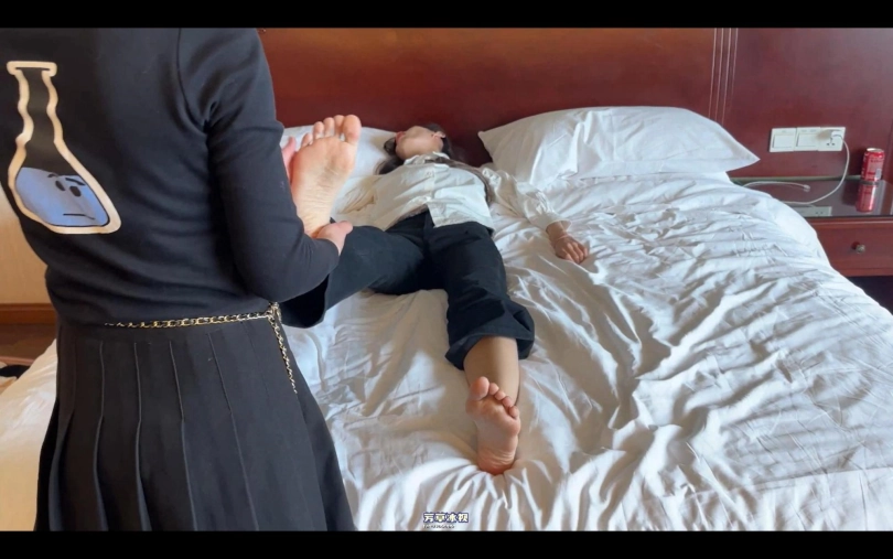 美女被女反派制服后摆弄,然后送给老大胖子男,被换上空姐制服等几套衣服摆弄、抚摸、玩脚......涉及元素有昏迷、摆弄、黑丝、换装等。