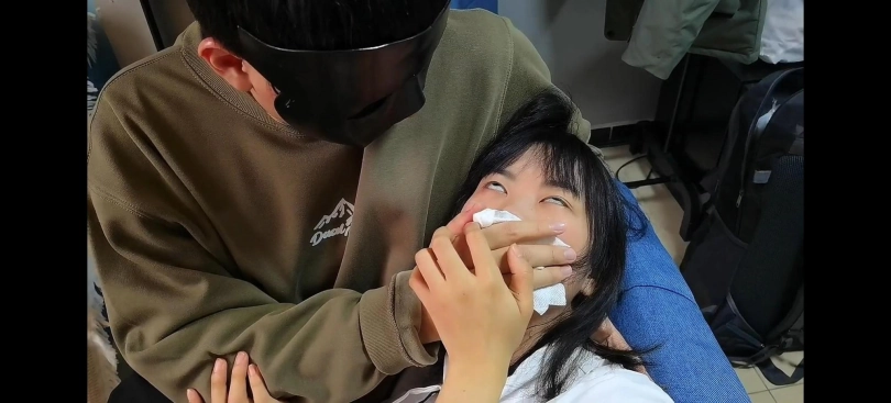 激辣下班刚回到家,就被躲在暗处的面具男从后面偷袭,直接上白手帕捂嘴,不断挣扎翻白眼,最终还是无法逃脱,只能任由他在沙发上摆弄自己!