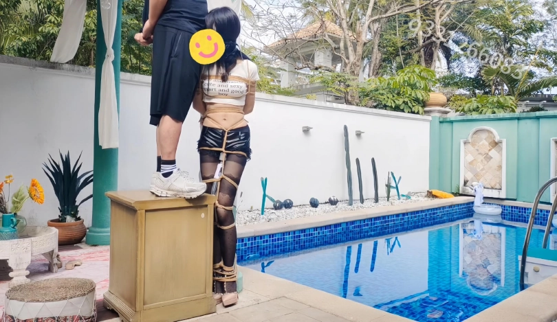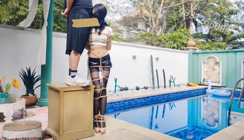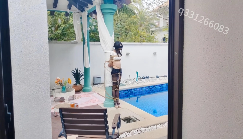 性感无比的黑丝高跟m被捆在某个别墅的院子里的柱子上,由于被高跟罚站无法动弹,只能扭动屁股,玩具,口球,蒙眼,的加持下只能扭动屁股,任由口水滴落,白天中感受周围的一片漆黑!!!最终,s是肯定会把持不住的,端来一张桌子,找到了m的跟前,解开口球,端起她的头部,准备开火!