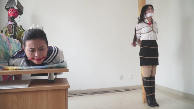 文慧打电话将张权叫到自己家中。但文慧没有想到的是,张权和施若竟然是男女朋友。张权来到文慧家里,发现施若被文慧捆绑堵嘴后,立刻又将文慧迷晕。解开束缚的施若气不过,脱下自己的原味丝袜直接塞到文慧嘴里。接下来,张权和施若一起玩弄着被捆绑堵嘴的文慧。但正当施若玩得起劲之时,张权竟然从背后把施若迷晕。原来张权一直想把施若捆绑玩弄,可无奈施若喜欢绑女人,但不喜欢被别人绑,所以一直不同意。可这次被张权逮到了绝佳的机会。张权突发奇想,给文慧和施若对调了服装,让成熟的文慧穿上学生装,又让施若穿上文慧的OL教师制服,将两人玩弄。等待两人的又会是怎样的命运?