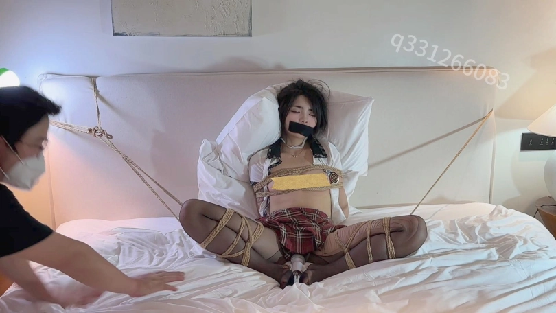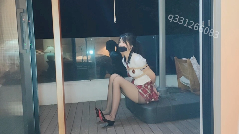 睡了几个小时的坏人醒来才突然想起,阳台还捆着一位如花似玉的美少女,,,于是兴致又上来了。。跑到车里拿来了早就已经准备好的jk,强制性的给她把衣服从新换上,接下来就是惨不忍睹的吊缚,开腿缚,坐缚,,,,永无止尽的强高,,,喉咙玩耍,还有最后的火力全开!!!