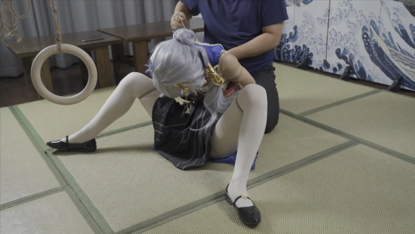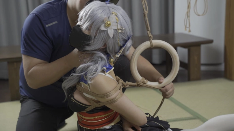 【象人】cos德莉莎!小0-白丝德莉莎,驷马圆环放置,随着绳子的拉升,难度逐渐升级!
