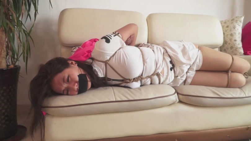然后当徐菁还在沙发看手机的时候,我直接将她推倒,不由分说的捆绑起来。