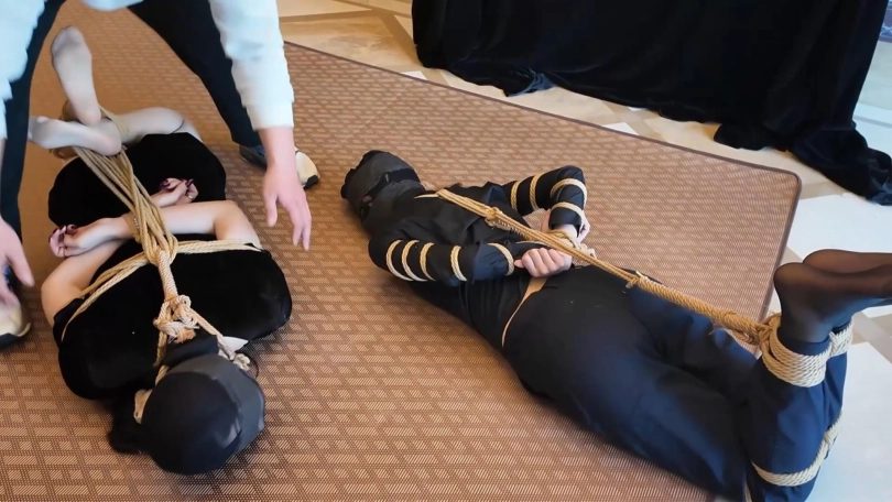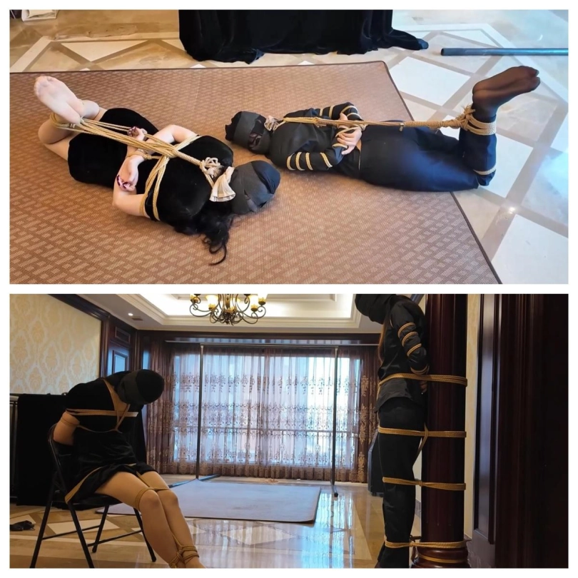 很久后,在一个密室里,保镖被绑在柱子上,富家女被绑在椅子上。她们二人的头依然被丝袜套着,捆绑囚禁。绑匪告诉她们不会有人来救她们,因为追踪器的信号早被屏蔽了。