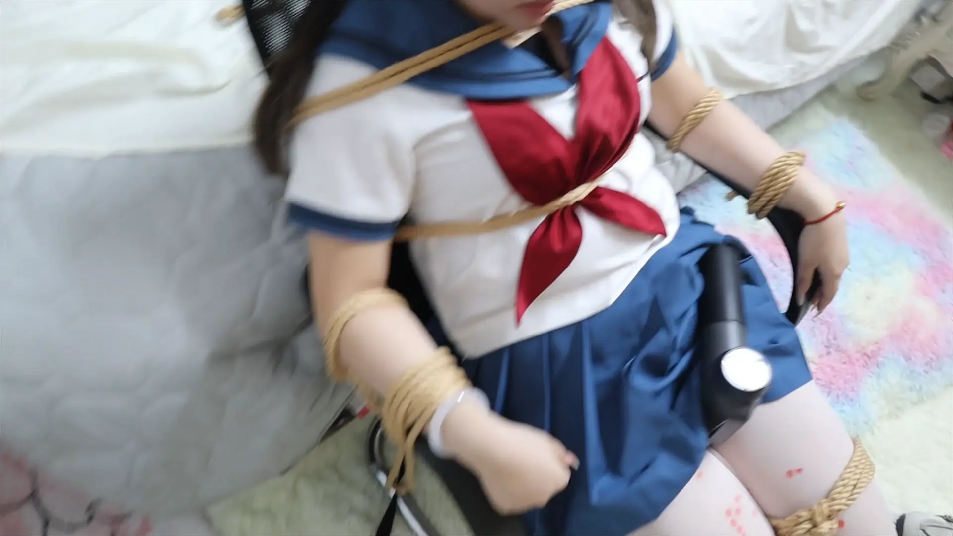 【荷仙少女】 清纯水手服萝莉椅子捆绑凌辱口枷亵玩,滴蜡在萝莉的身体上,白丝萝莉痛苦不堪的伸出舌头哭泣喊叫 把震动直接压进双腿间 玩舌+捆绑+口环+鞭打+滴蜡+TK+按摩 由一开始被动到屈服主动
