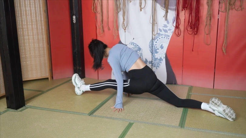 嗷嗷自己拉伸锻炼,碰到要“帮助”她的“好心人”