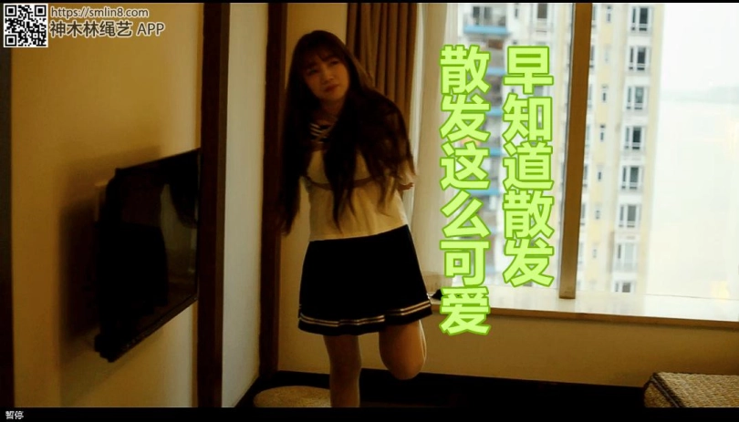 小美女是青春活力类型,绝对是令人开心发笑的性格,穿了一套学生装,还要说来个双马尾,才配得上学生,玩着玩着就发现原来有横梁,就尝试一下单脚吊