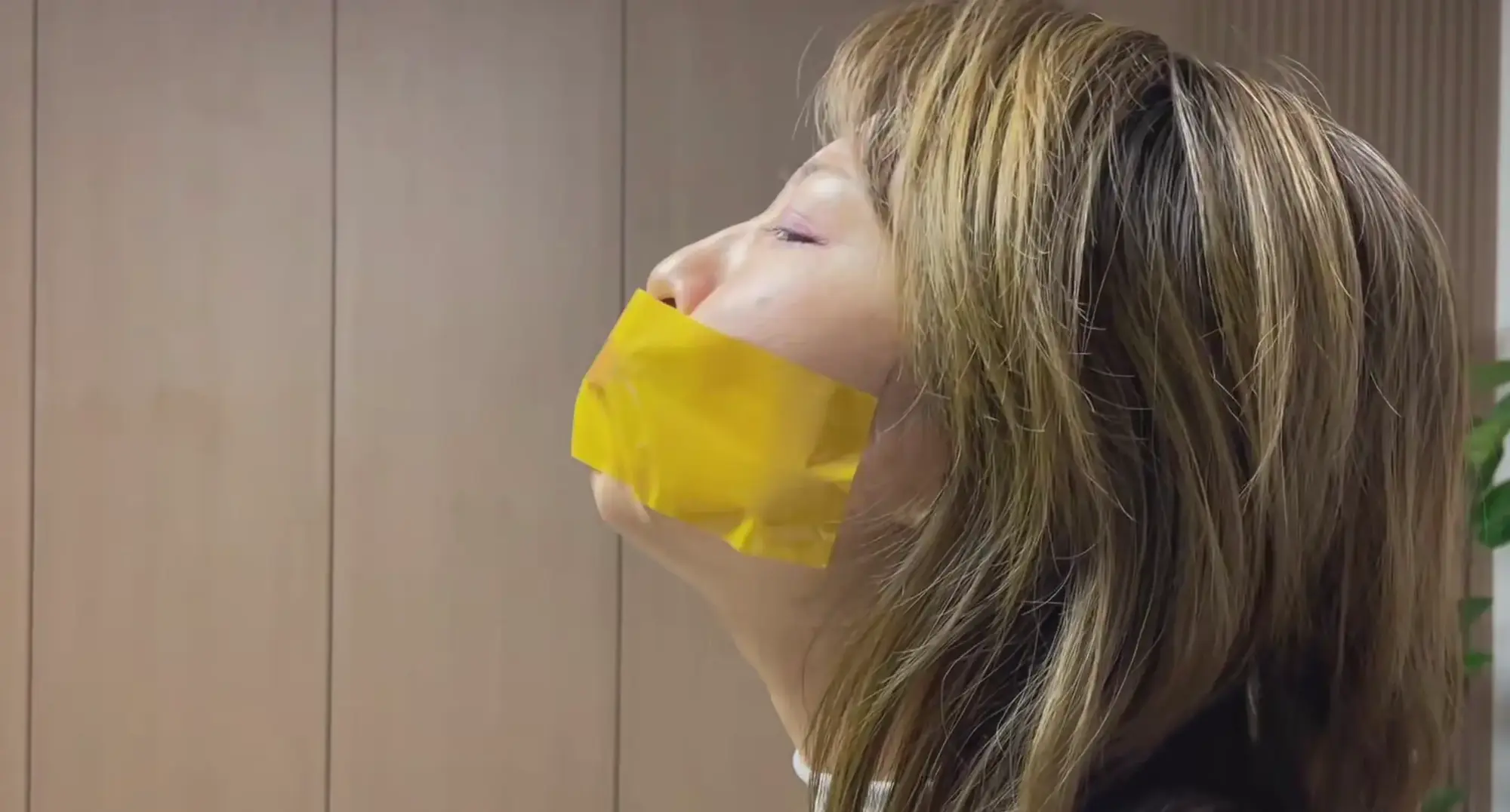 【云雀】【封嘴劫7(上)】封嘴劫再现!Zheng务人员小米经常直播宣传防绑架侵害,这一天在家中遭遇劫匪强势封嘴,黄色胶带封鼻,难以呼吸!演员极度卖力!(最后一张透明胶带封嘴)