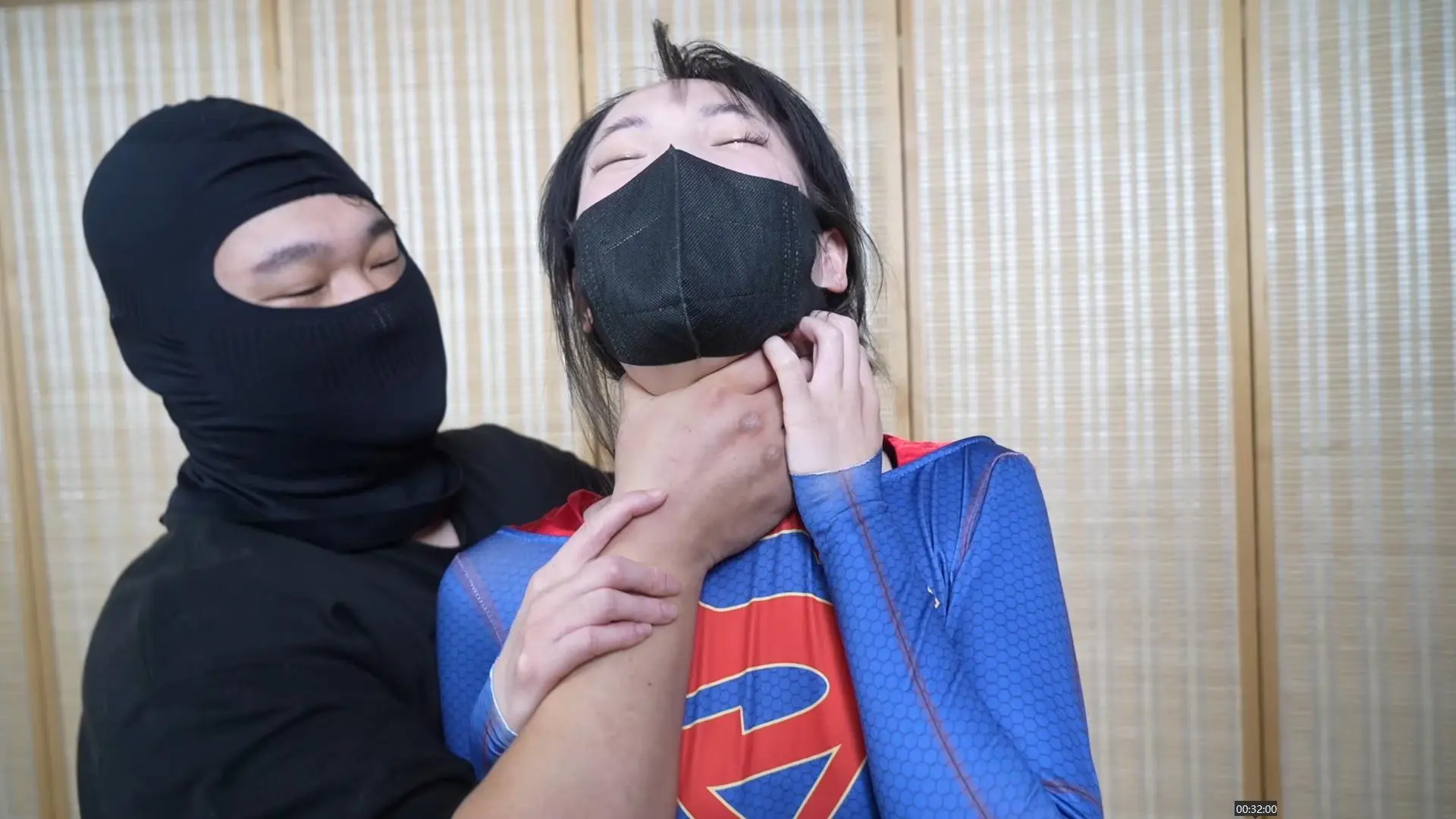 蒙面男子与恶魔沉沉终于在楼道内击败了女超人嗷嗷,沉沉对嗷嗷的身体已经垂涎三尺