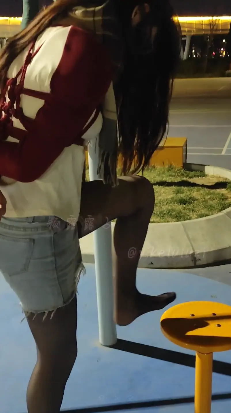为了让露露体验户外被捆绑的感觉,在人多的傍晚给露露绑成日式捆绑,全程不披衣服被押送到户外。黑丝热裤本身就惹人注意,还要被捆绑着到公园散步,期间多次被路人盯着看,最后还被打了招呼慌忙逃跑。