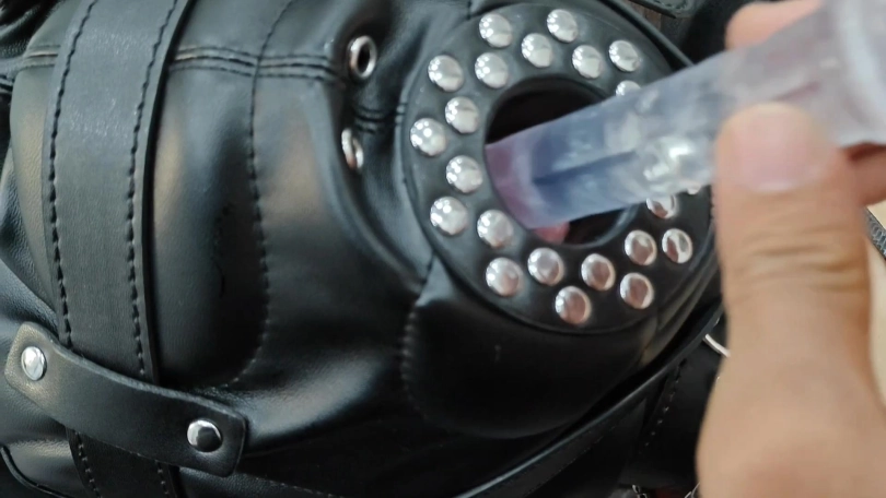 小九首次尝试死库水泳衣调教:穿戴好头套,进行牵引,头套刚好漏出嘴巴,乖乖的伸出舌头舔手指,被牵引训练,首次k9训练,后面又被摸胸被上[X_X],嘴很硬,但是身体很诚实,小豆豆硬了,下面都是湿湿的。