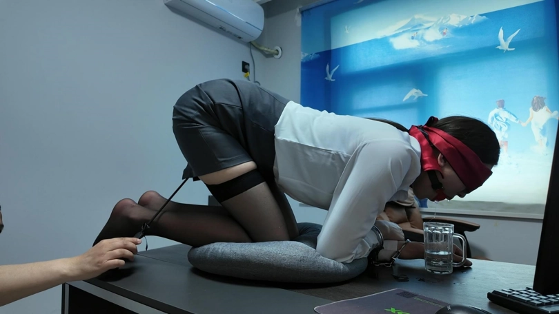 女老板在办公室发情,自己带手铐跪在办公桌上带上口球,柠檬片,口水哗哗的流,被羽毛调戏后,一发不可收拾,拿出按摩 棒,自己玩起来,声音那叫一个销魂,一会就达到了巅峰