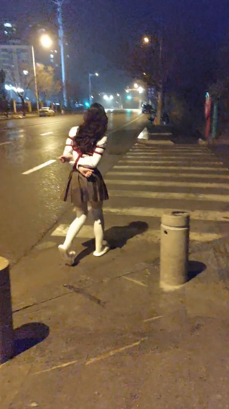 露露被捆到外边逛大街露出,天色变暗后突然下雨