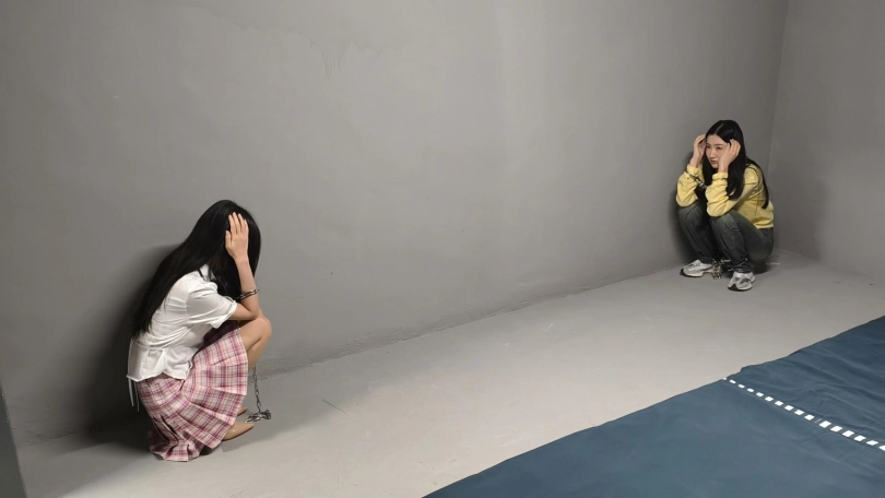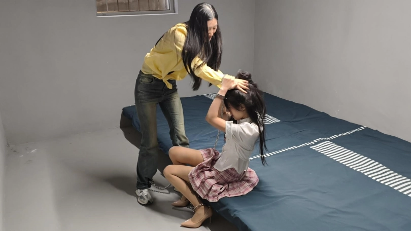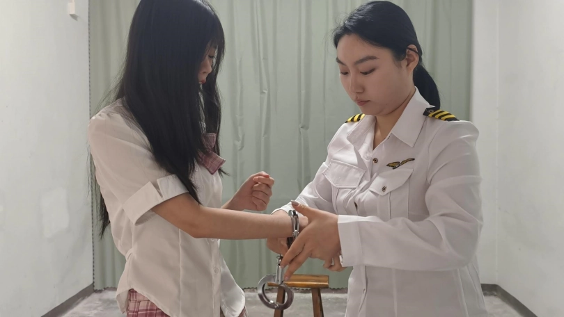 【忘忧社】新模特菲菲出演女犯本系列第一部,四女囚系列之女大学生电诈,张婕因电信诈骗被捕,手铐脚镣,连体镣铐,户外指认现场,真实感爆棚,让人不寒而栗。