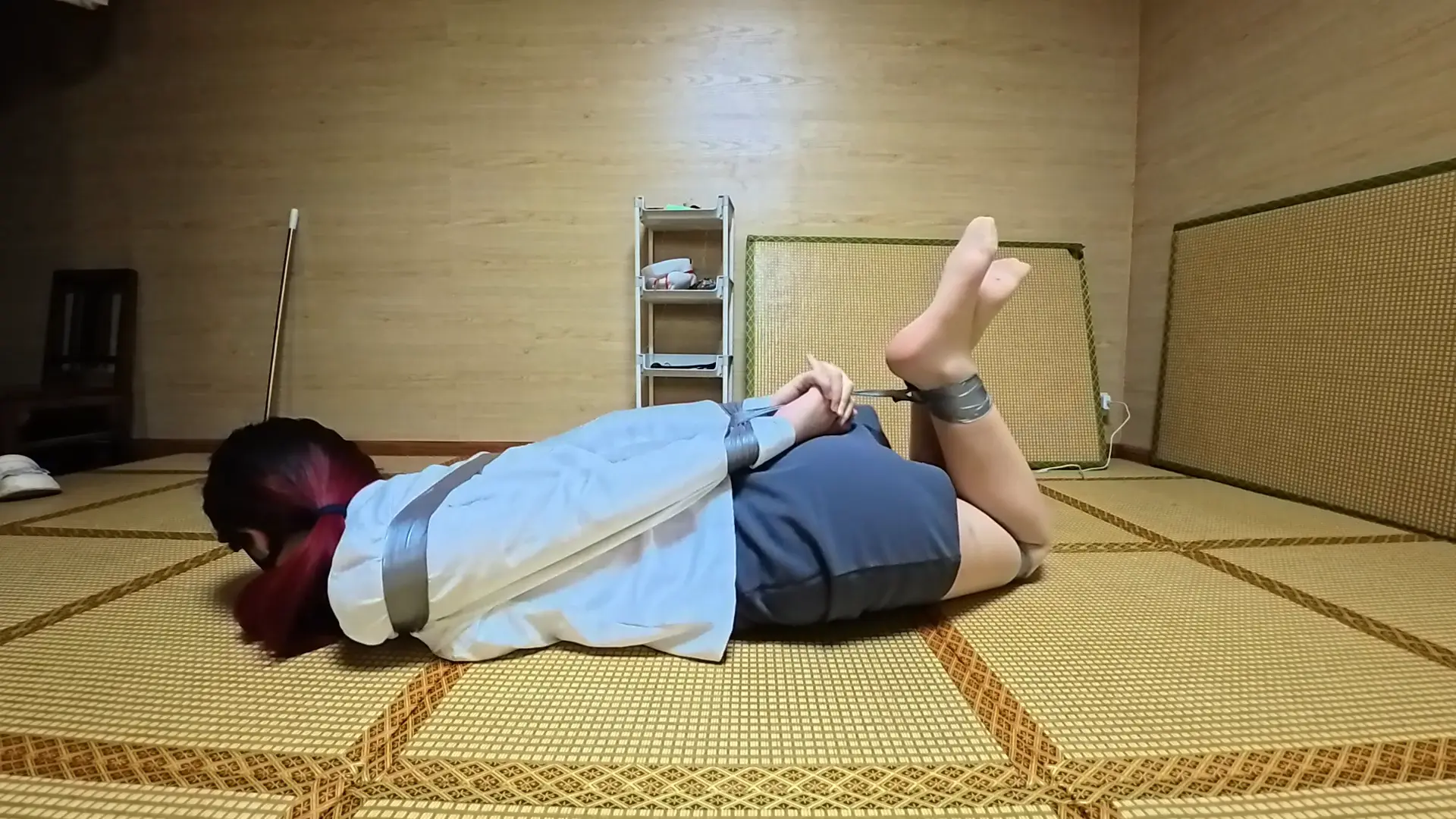 【渎竺】【川川】欧美图复刻!OL职业装,肉色丝袜银色胶带驷马缚!