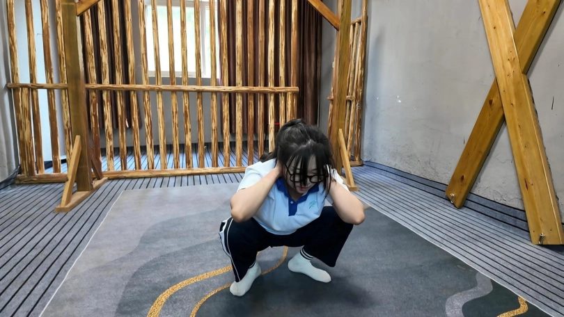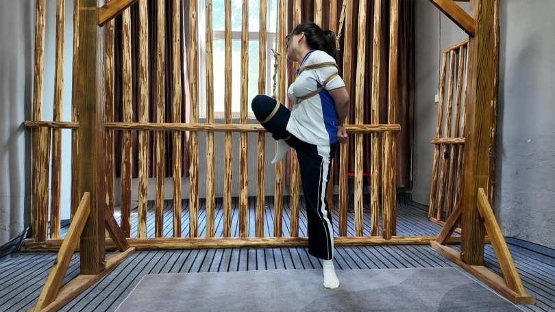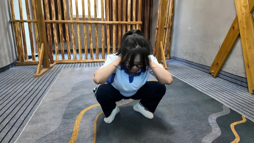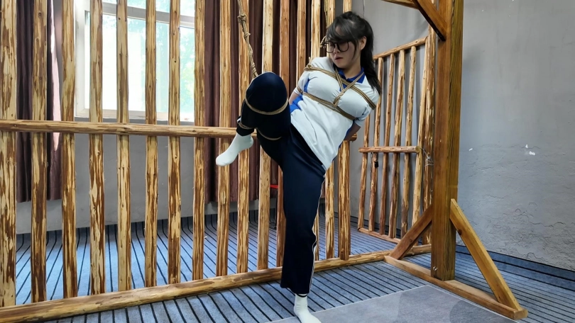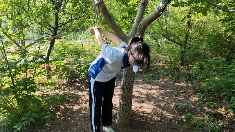 小遥逃学,被教官抓回管教,先吊到树上,又绑到椅子上面打屁股,又吊起来放置,没想到小遥自己慢慢解开,刚想逃跑,又被抓回,这下驷马紧缚,看她还跑不跑,罚深蹲,蛙跳