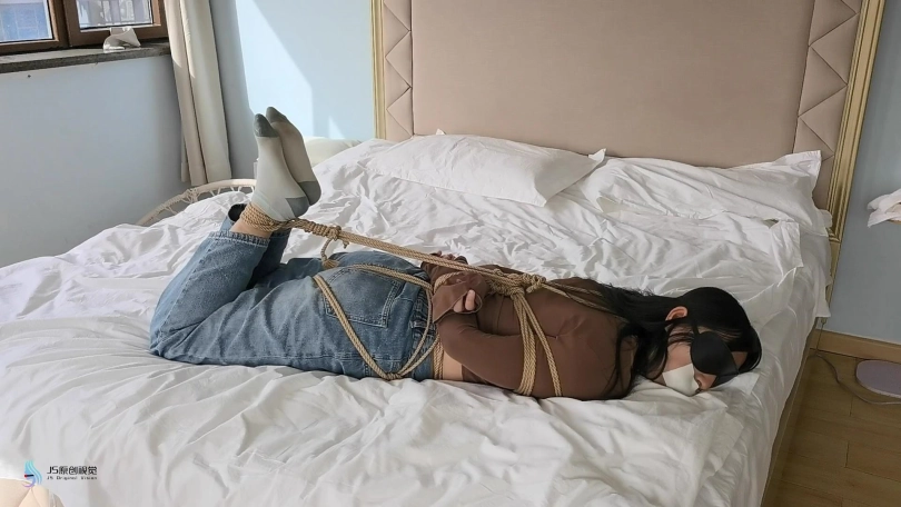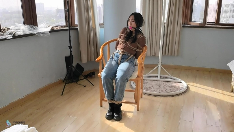 女孩回到家中,但她不知道家中已经有人潜伏,正在她休息时,劫匪从后面捂住她的嘴巴,将她绑在椅子上,嘴里塞住口球。过了一会,歹徒摘下口球,用她穿过没洗过的丝袜塞进她的嘴里,外面用胶带封住,蒙住她的眼镜,脱掉她的靴子,露出她那又脏又臭的棉袜。将女孩驷马捆绑好后离开,留下女孩独自挣扎。