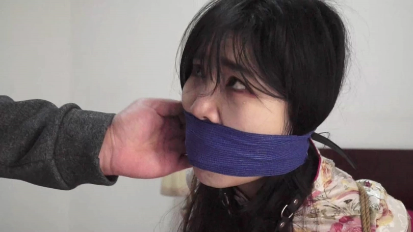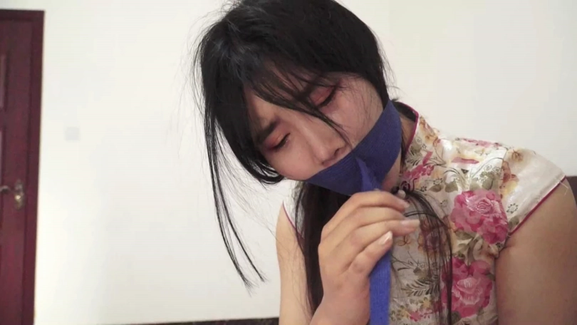 【逍遥】旗袍肉丝美女吴晗逃跑未遂惨遭二次捆堵折磨(欧式直臂捆绑+驷马、连裤袜塞嘴、胶布绷带缠绕封眼)