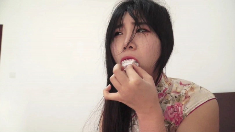 大叔不顾吴晗呜呜挣扎,解下吴晗嘴里的塞口球,让吴晗张嘴。吴晗:“不要!!”胖大叔捏住吴晗的鼻子迫使她张嘴,把黑色连裤丝袜一点点塞进吴晗的嘴里,一边塞一边让吴晗把嘴张大,吴晗的小嘴再次被塞得满满的。胖子:“怎么样,这礼物不错吧!”让后用蓝色自粘绷带缠绕封在吴晗嘴外面。