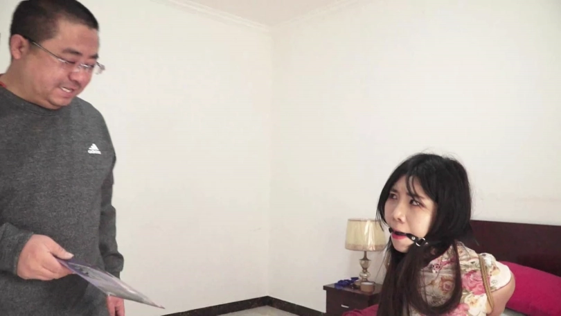 胖大叔毫不客气,用绳索将吴晗上身捆成欧式直臂,把带口球的吴晗都给捆哭了。捆完上身吴晗想跑,又被大叔一把抓回来,往上身加了点捆绳,把腿和脚踝并拢捆了很多道。