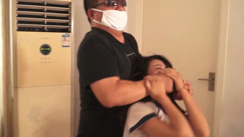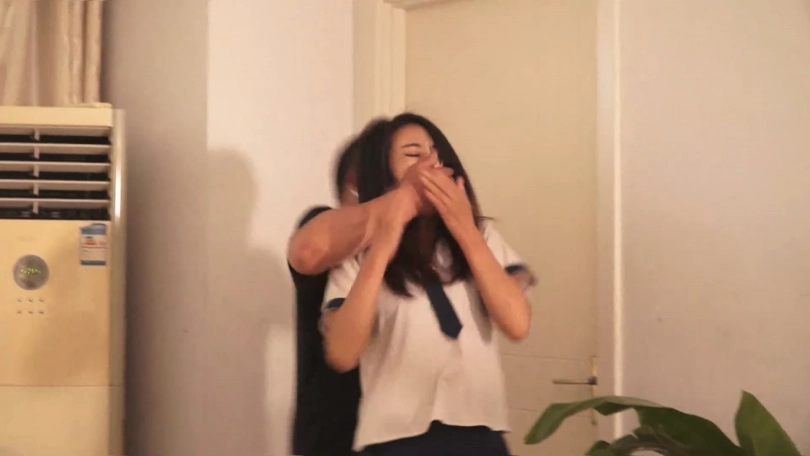 情节简介:美女夏炎身着水手服,腿上穿着黑色连裤丝袜套白色棉袜和帆布鞋开门回家,没想到被一个戴墨镜和口罩的胖子男劫匪捂嘴袭击。