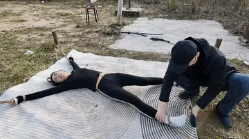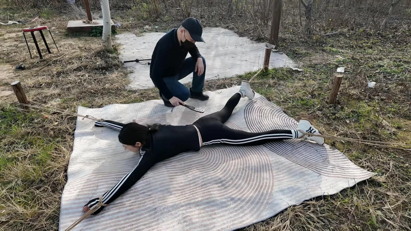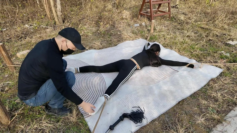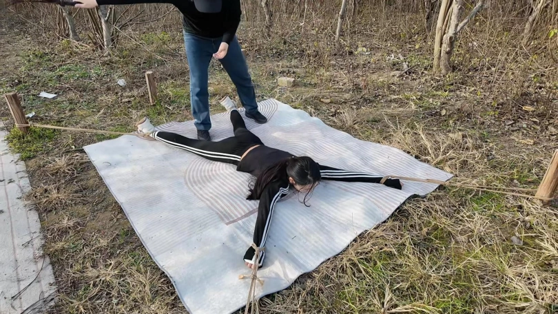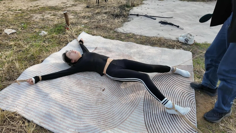 十一晨跑被歹徒抓住,进行一系列折磨挣扎,上集歹徒把十一绑到柱子上用棒棒震到失禁,抓起来带着湿身的裤子,大字捆绑,各种鞭打,TK,又把手脚绑到地上四根柱子上,成大字型,屁股朝上,用力打屁股,打完翻过来仍然是大字型,继续折磨....折磨之后扬长而去,留下十一在地上苦苦挣扎