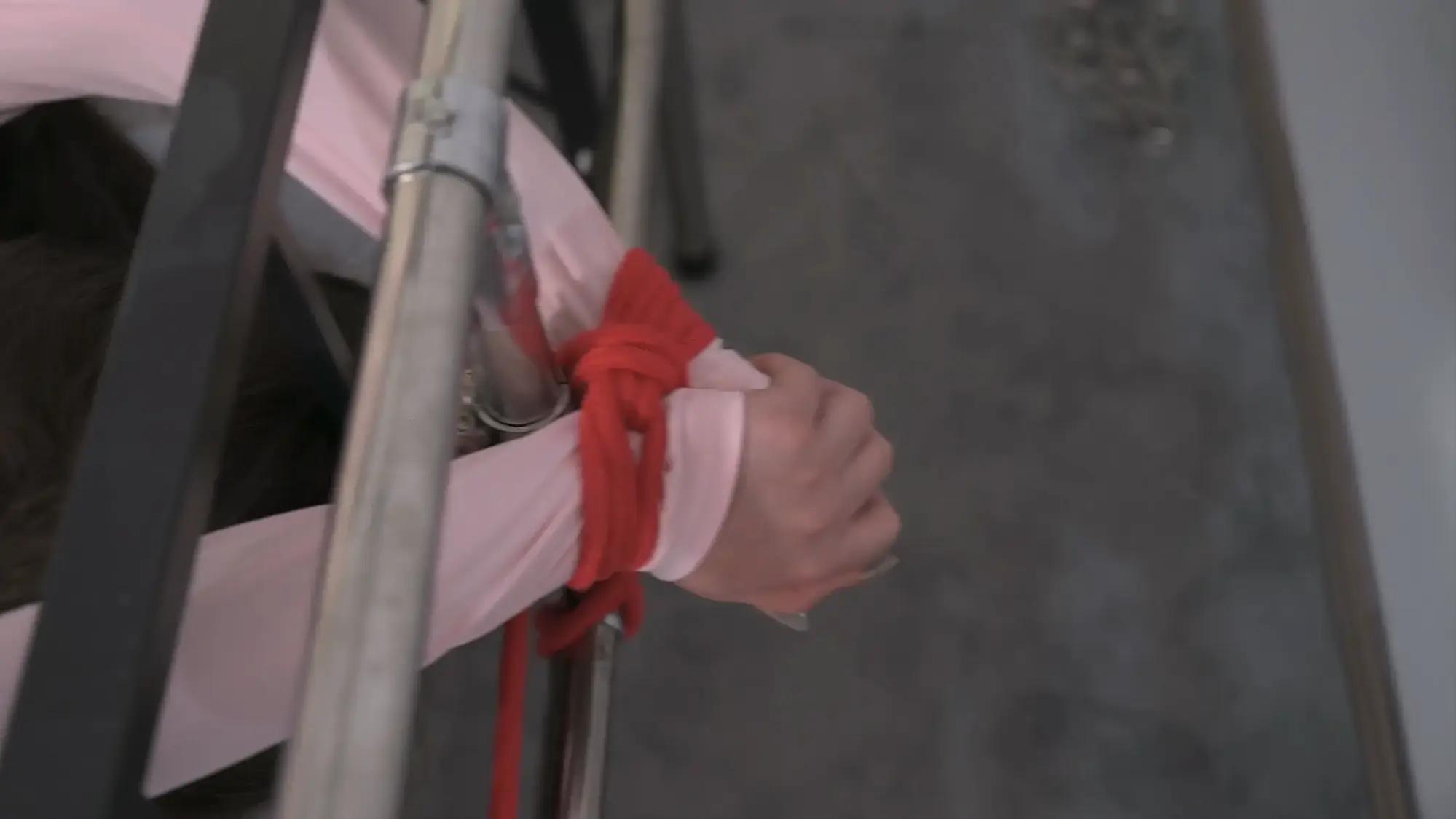 【撒琅制造】双S齐动手将言妍红绳吊腿调教,请就着文本解说一同食用--女王装、足弓、股绳、刺轮、TK、百合、闻脚、女女贴贴