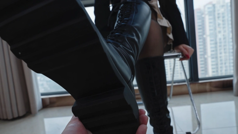 约到了最近很火的汗脚橙橙,穿个黑丝长靴跟女s一样,开始强制m闻她的臭靴子臭黑丝脚,让m做她的除臭脚垫。各种姿势让m天脚插嘴。最后被强制绑起来挠天和天腋下。她非常抗拒挠天和天腋下,从女s变成玩物很反差。
