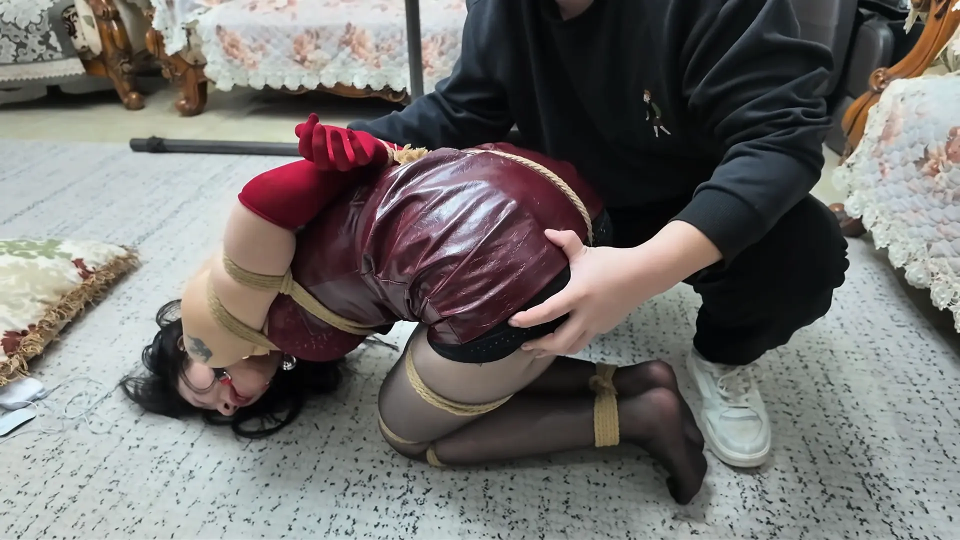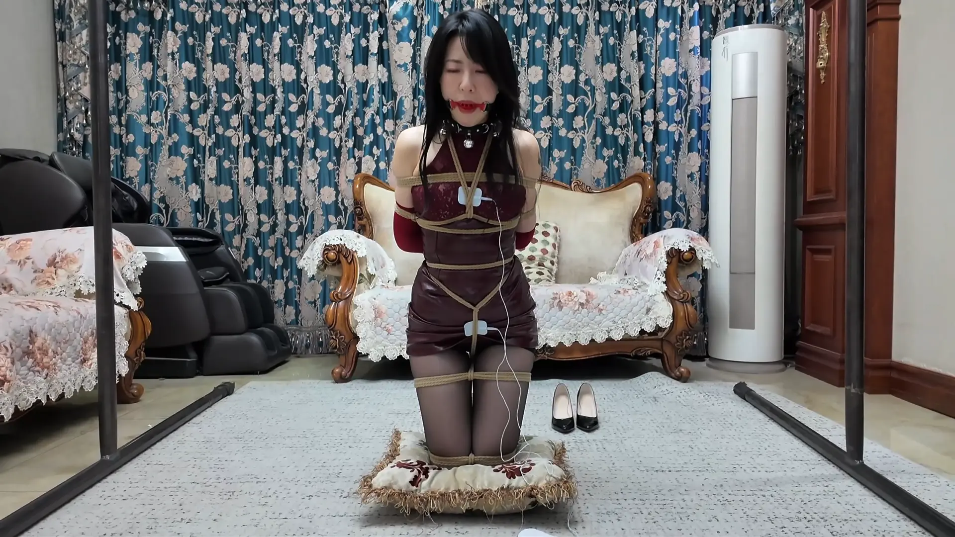 被一番严密捆绑后,柴哥先让我们“黑猫”探长享受一下“理疗”服务!