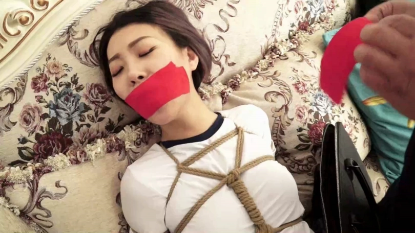 看点:五花大绑、逃脱未遂二次捆堵、连裤袜棉袜塞嘴(塞嘴特写)、胶布绷带多重缠绕封嘴、驷马封眼、丝足特写