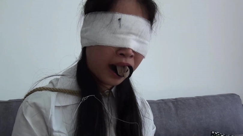 【逍遥】美女笑笑蒙眼捆绑堵嘴丝袜套头挣扎