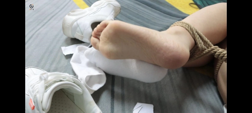 小茜问到“谁呀。” “送快递的。”门外传来男人的声音。小茜一边嘀咕“我最近没买过东西呀,哪来的快递。”一边穿上了鞋子过去打开了门。映入眼帘的是一个提着大号行李箱的年轻男人。此人就是得知了小茜住址的小明,像是看出了小茜的疑惑小明开口道:“这是京猫为了回馈老用户活动送的礼品,我来帮您放到屋里吧。”小茜见他语气态度诚恳便放他进了门“你们搞活动就送一个行李箱嘛?”“当然不是,礼品都在箱子里,您要不要打开看看?”小茜转过身子打开箱子,却发现都是一些绳子胶带之类的东西,疑惑道“这算是什么礼品,你们是不是装错了?”这时小明关上了门说到“当然没有,只不过现在还不太完整,把你捆绑好装进去才是一份完整礼物啊。”说罢小明掏出匕首,威胁到:“不许乱动,不许喊,乖乖的听话,除非你想被我分成几块装到箱子里。”小茜明显被他的话吓到,颤颤巍巍的说到:“求求你不要伤害我,我有钱,可以全都给你。”“少废话,你不是卖臭袜子嘛,去把你的臭袜子都给我拿出来,放到沙发上。”小茜不明所以但还是照着他的话做了,拿出了一袋子的袜子。并全都倒在了沙发上,“你自己选一双袜子塞到嘴巴里”“求求你,不要这样了,这些袜子都是穿过好几天的了”“自己还会嫌弃自己吗,少废话赶紧的。”为了让自己好受一点,小茜选了一双比较薄的丝袜塞到了嘴巴里,由于确实是穿了好多天的袜子,味道确实比较大,塞的时候小茜止不住的干呕。完成后小明便将她绑了起来。捆绑完成后小明觉得小茜的嘴巴还有很多没有塞满,于是从那堆袜子中找出了一双味道最重的连裤袜,在小茜的呜呜声中又将这条连裤袜塞到了她的嘴巴里,然后用胶带封好。完成后小明说道,“也不要说我不给你机会,我们玩个游戏,如果你能在五分钟之内脱掉你的鞋和袜子那我就放了你怎么样?现在计时开始。”然后小茜就开始努力的脱掉自己的鞋袜,好不容易全部脱下来了小明却