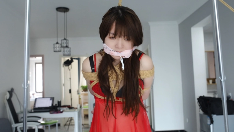 【心悦艺束】小姐姐红色情趣内衣的捆绑悬吊
