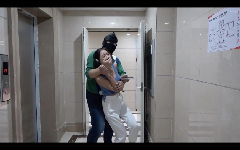 开场戴耳机出电梯,被从后面偷袭。昏迷被瘫放在椅子上,勒紧胸部,跷二郎腿绑法。绑好,嘴里塞丝袜,麻绳勒嘴,套上黑袋子。醒,开始扭动挣扎呜咽呻吟。镜头从脚到头。胸上也全是绳子,男人走过来拨弄着小丁的脑袋,然后扯下了黑塑料袋露出里面小丁的脑袋,小丁脑袋摇的和拨浪鼓似的,口水透过丝袜流出来。呜咽挣扎(各身体部位特写镜头)