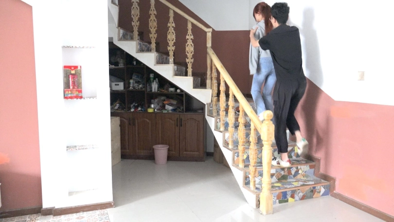 场景1:美女大学生娜娜正在上楼梯,突然,一个男子从身后冲出来,一手用凶器抵着娜娜,一手捂住娜娜口鼻,将娜娜劫持到自己的密室里。