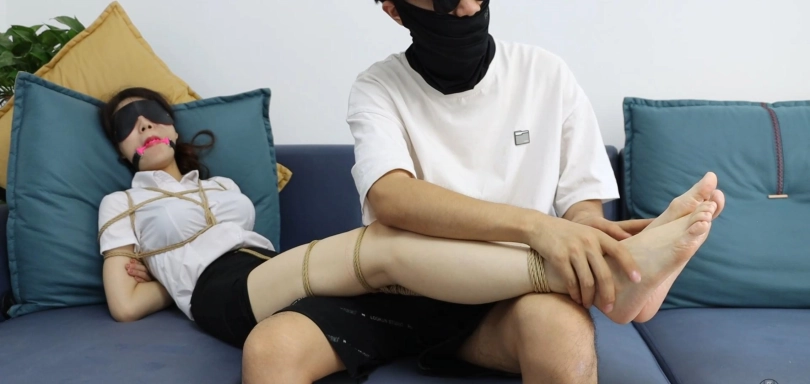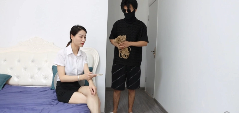 在上次被小偷绑好之后就离开,留下独自被捆绑的刘小萌,可是费了她很大的劲才解开。这天她坐在房间,拿着自己随身携带的手铐铐铐在自己手上,不过很快就用钥匙打开了。撅着嘴不高兴的说:“看来一个人还是没有感觉,诶,上次那个小偷绑的还不错,有了。”接着刘小萌便打通了一家会所的电话,坐在房间等待会所工作人员的到来。很快一家绳艺会所的人便接到刘小萌的电话,便来到了刘小萌的家中。工作人员:“刘小姐按照您的订单信息,我是需要将您捆绑起来寄往订单上的地址,您准备好了吗?”刘小萌:“准备好了,开始吧!”很快刘小萌就被捆绑起来,被戴上口球眼罩,接着工作人员拿来一个巨大的袋子罩在了她的身上,扛着她走出了房间。