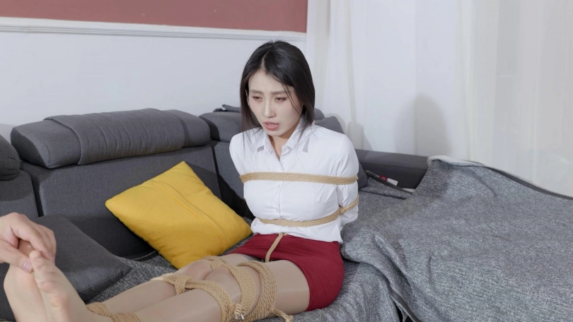 › 【红鲤鱼】第一视角双机位捆绑堵嘴挠脚肉丝女上司