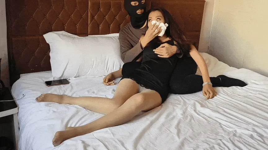【JS】【迷晕玩弄诺米】papa口J肉丝黑吊带震动棒分腿器翻白眼手帕捂晕
