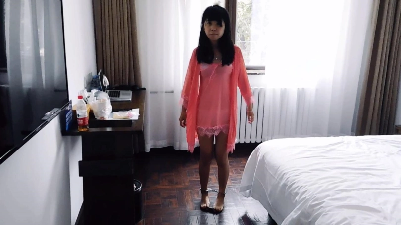 妹子和摄影师一起进门,妹子第一次来体验拍镣铐,对一切充满了好奇,而摄影师也是第一次拍这个女孩,在拍之前先试试道具。摄影师首先脱下妹子的鞋袜,铐上脚铐和脚趾铐,问问妹子感觉如何,妹子觉得挺舒服的。妹子先在床上活动下,然后,下地走走感受下。摄影师给妹子戴上背铐,问问妹子感觉如何,妹子觉得也还挺好。妹子先在床上活动下,然后,下地走走感受下。摄影师给让妹子趴下,驷马铐上感受下。问问妹子感觉如何,妹子觉得还挺舒服的。妹子觉得这个姿势真挺舒服的,挤压着胸还挺刺激的,充满了好奇。摄影师想给妹子解开时,发现忘了带钥匙,怎么找也找不到,告诉了妹子。妹子吓坏了,摄影师说马上回家去取,在这里安心趴着别害怕。妹子一个人在房间里趴着,特别害怕,第一次就遇到这种事,甚至怀疑摄影师是个骗子,哭了出来。这时,一个小偷撬门进入,看到了床上的妹子,询问妹子咋回事,妹子解释不清一直在哭泣。小偷看妹子动不了,觉得可以玩了,挠脚心一下。最后,用袜子堵上妹子的嘴,拿上赃物离开。妹子觉得受到了委屈,哭了。