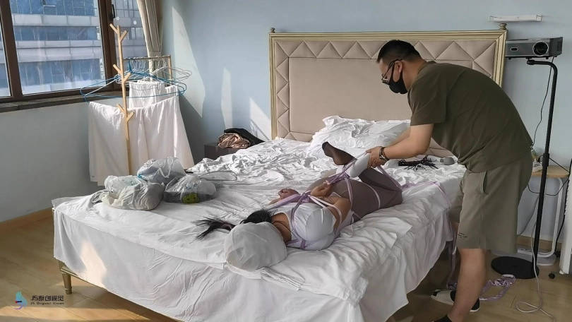 【JS】【曼妮】绸带驷马捆绑瑜伽服白棉袜堵嘴包头恋足棒棒刺激